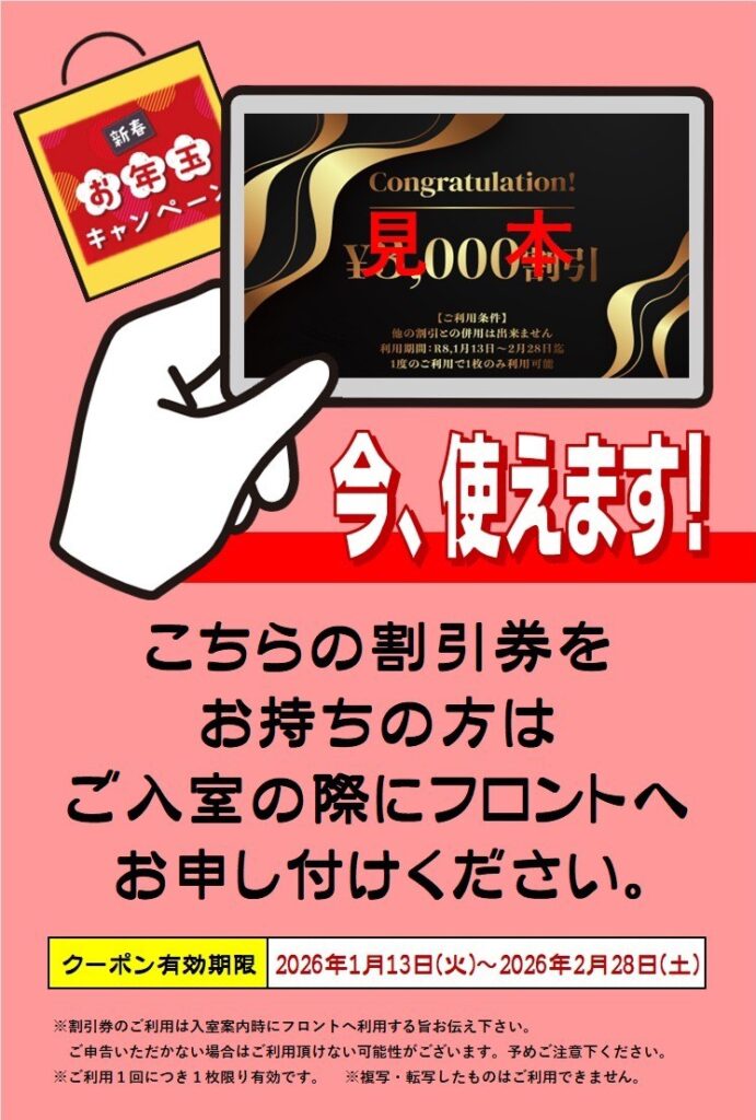 期間中は、割引券をご利用いただくことで通常よりもお得にご利用いただけます♪
