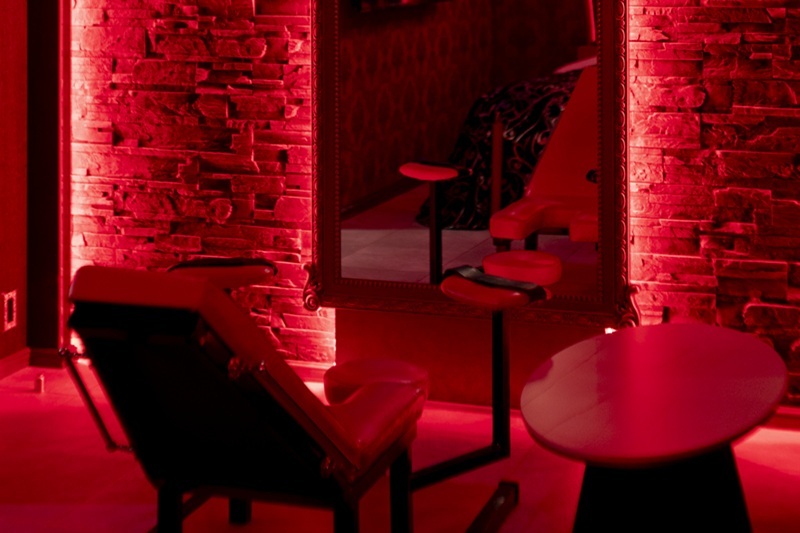 ロアンヌ唯一の2台SM什器を設置、SM什器の前は大きな鏡となっております。ロアンヌでしか体感できない本格SMの形を是非お試しください。