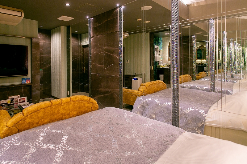 高級感を大切にしたお部屋で、非日常的ながらも落ち着いた空間となっております。鏡も多く、皆様から幅広く人気のお部屋です。