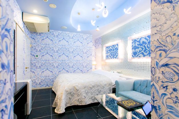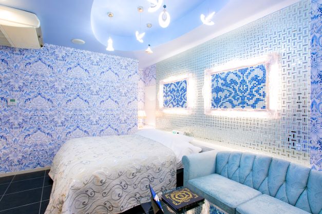 淡いブルーとホワイトを基調とした透明感と清潔感あふれるお部屋です。とてもリラックスできる空間となっており落ち着いた時間を過ごしていただけます。カラオケも設置しております。